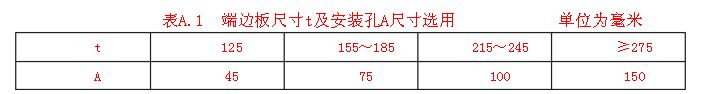 六、踏步板采用螺栓连接的端边板尺寸t安装孔A尺寸见图A.2及表A.1。 注:安装孔也可选用25×14的长圆孔.以便于安装.