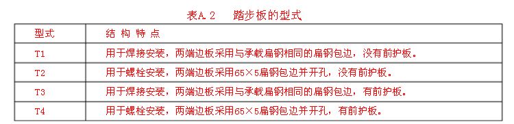 前护板可根据需方要求采用花纹钢板、条纹钢、或其他防滑材料。A.2 踏步板允许偏差