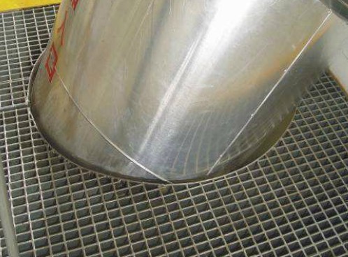 1、切割后的格栅板内环焊扁钢,加固格栅板,保证其强度,保持整体工艺美观。格栅板开孔边缘的扁钢高度应统一一致,且下部与格栅板下部平齐。
