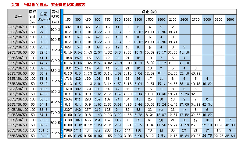 电厂锅炉用热镀锌钢格栅板规格表(系列一)